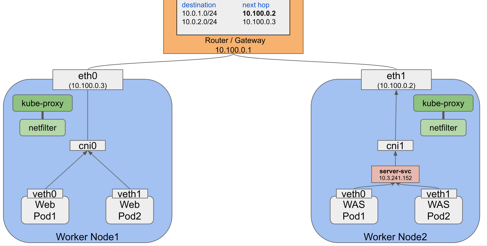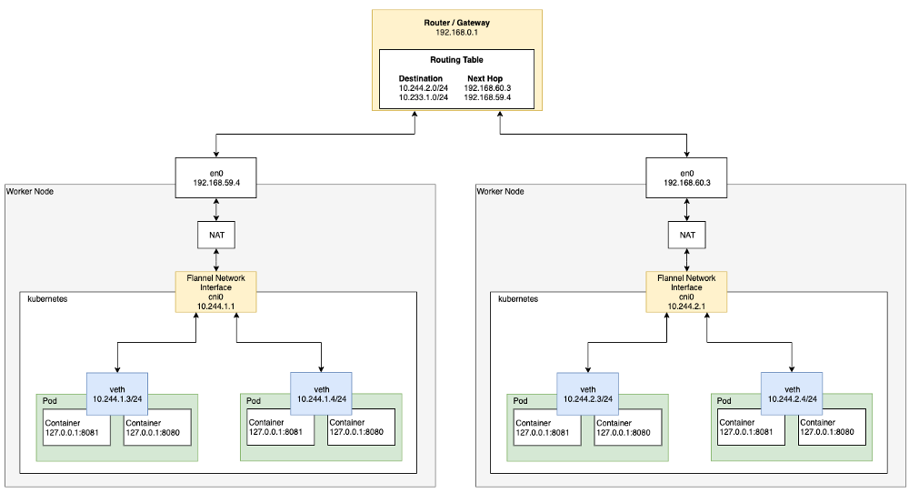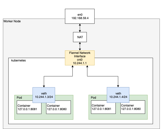 - Pod → veth → CNI(Flannel) → eth0 → 라우터(=VPC) → eth1 → CNI(Flannel) → veth → Pod