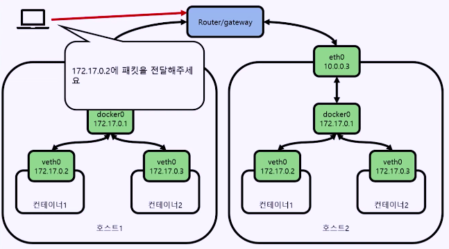 - 가상 네트워크 인터페이스, 브릿지 네트워크, 라우터의 라우팅 Rule 조합을 일컬어 오버레이 네트워크라 한다.