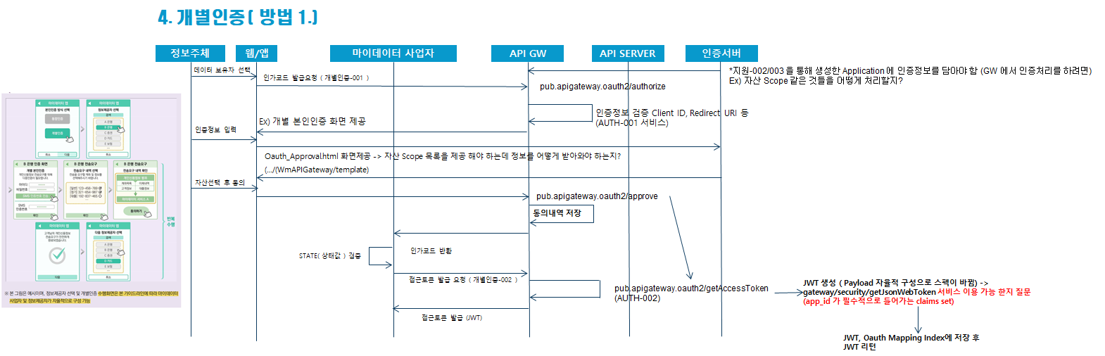 - 인증 코드 발급 ( secure.apigateway.oauth2:approve ) 수행 후 client_id 값과 client_secret 값을 넘길 수 없음. ( 미리 저장해둔 client_id값과 client_secret 값을 authorize_data 인덱스에서 꺼내와야 함)