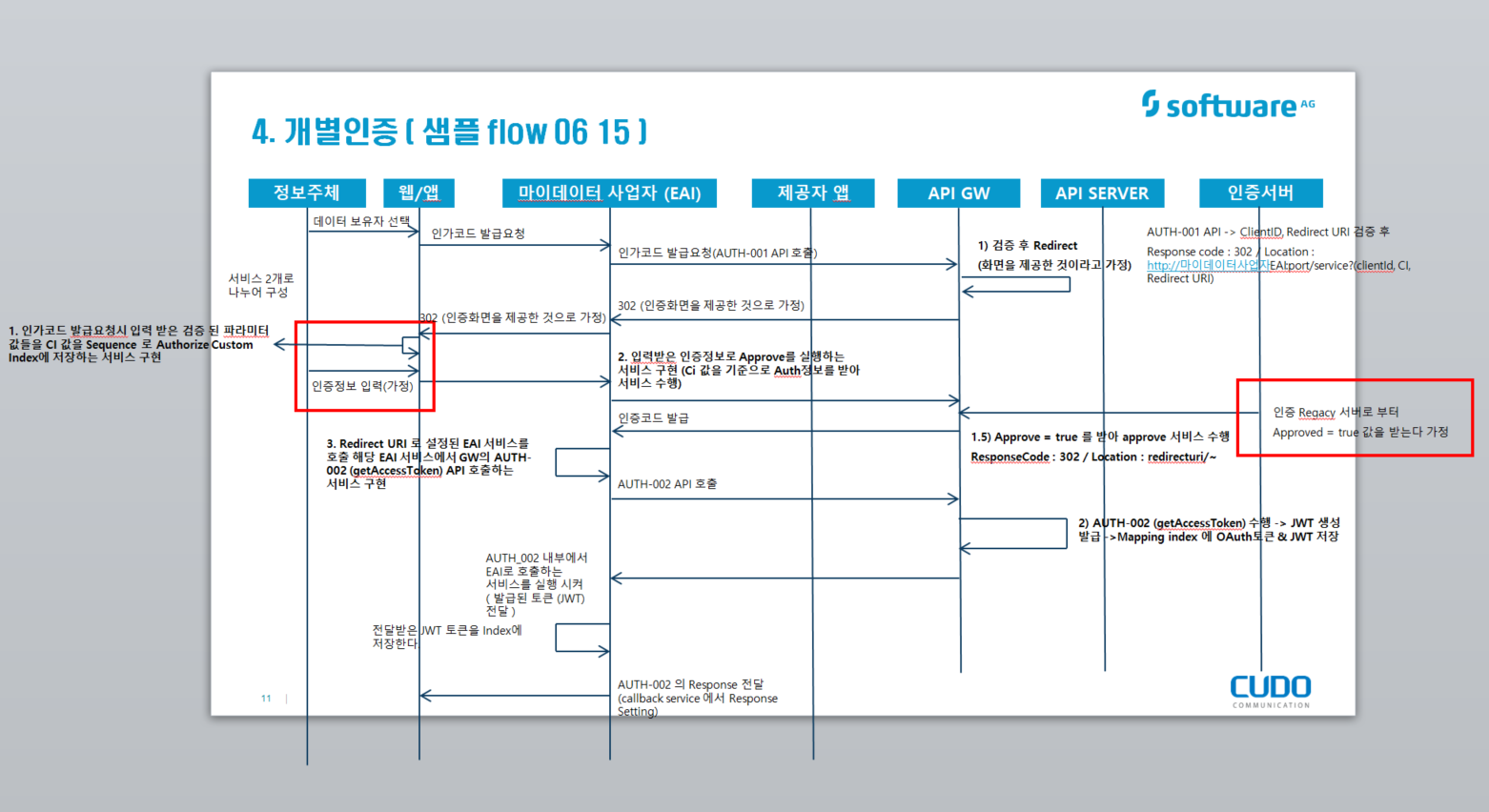 - Redirect URI로 설정된 EAI 서비스를 호출 > 해당 EAI 서비스에서 GW 의 AUTH-002 를 호출하는 서비스를 구현 ( Callback Process)