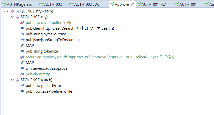 - AUTH_001 에서 gateway_authorize_data_1 인덱스에 저장한 인증 정보로 해당 정보를 갖고 approve 서비스 실행