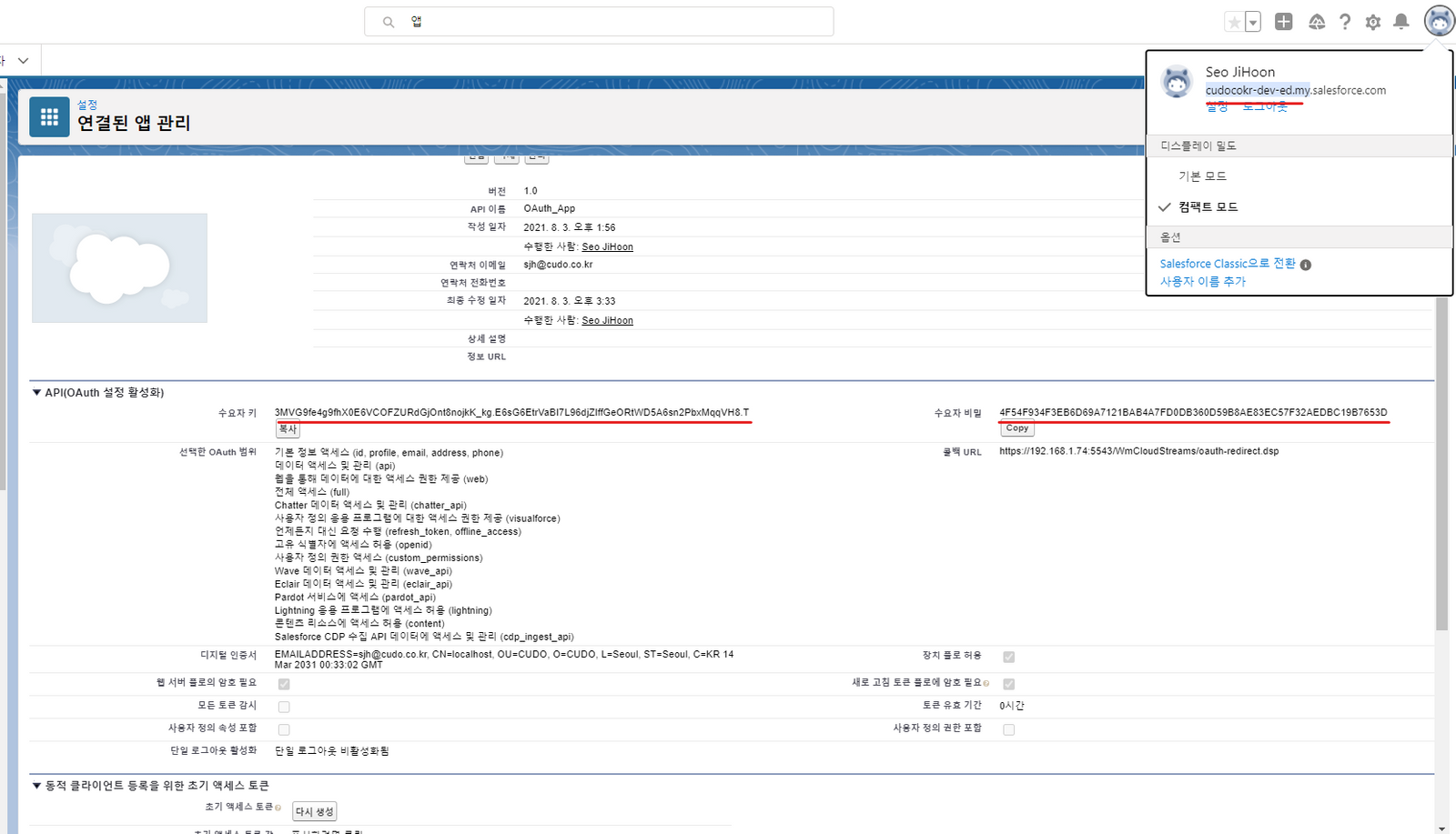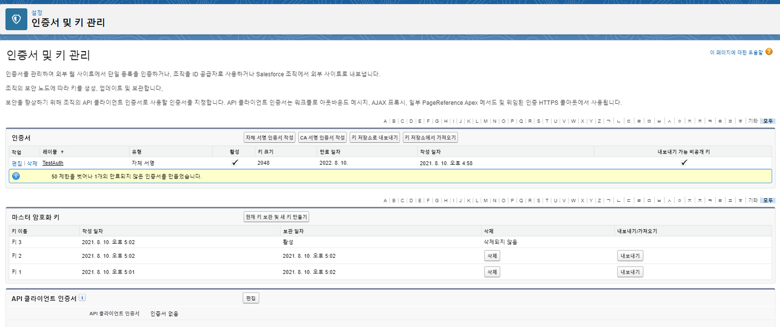 > 자체 서명 인증서 및 키 저장소 다운로드