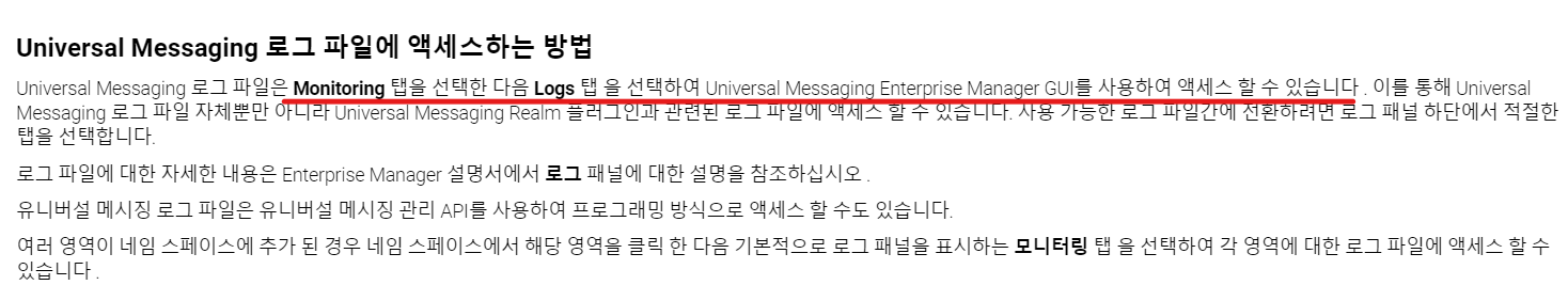 Messaging 로그 파일 엑세스 -> IS > Monitoring > Logs > UM Enterprise Manager GUI 설정