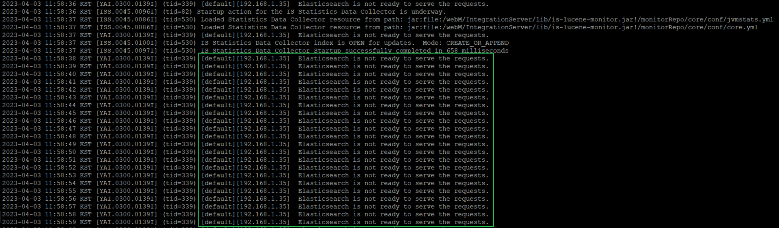 Elasticsearch is not ready to serve the requests. 로그가 지속적으로 발생
