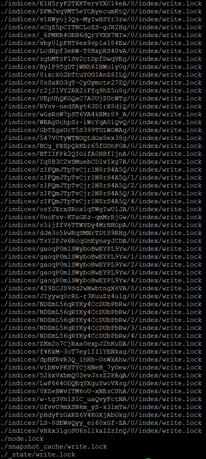 Note. node.lock 파일은 영향이 없으나 아래 write.lock 파일들이 기동 시 영향이 있는 듯 하다.