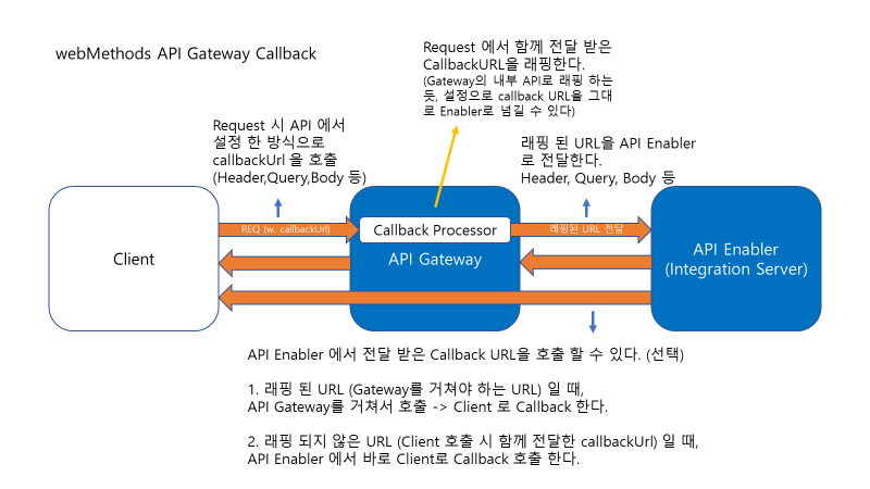- API Gateway Callback Processor 에서 전달받은 callbackUrl 을 래핑한다, 래핑하여 Enabler로 전달