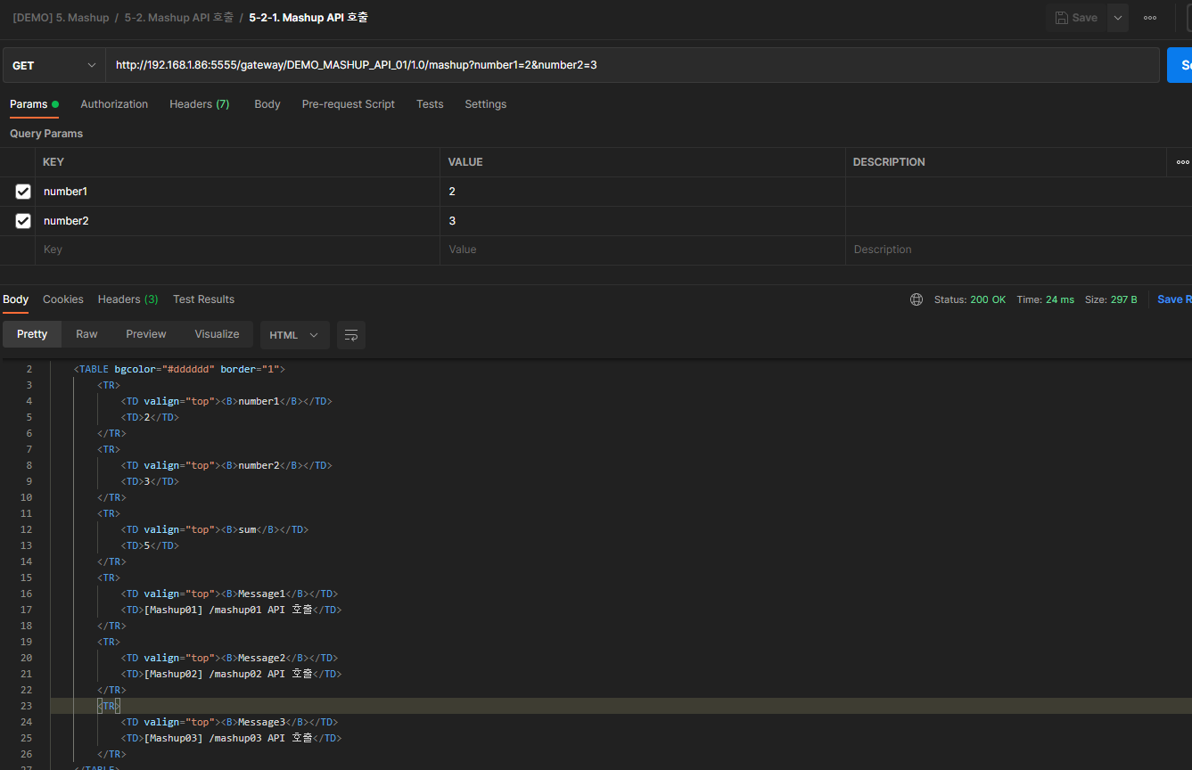 - Mashup API 호출 시 요청 파라미터 매핑 (number1)