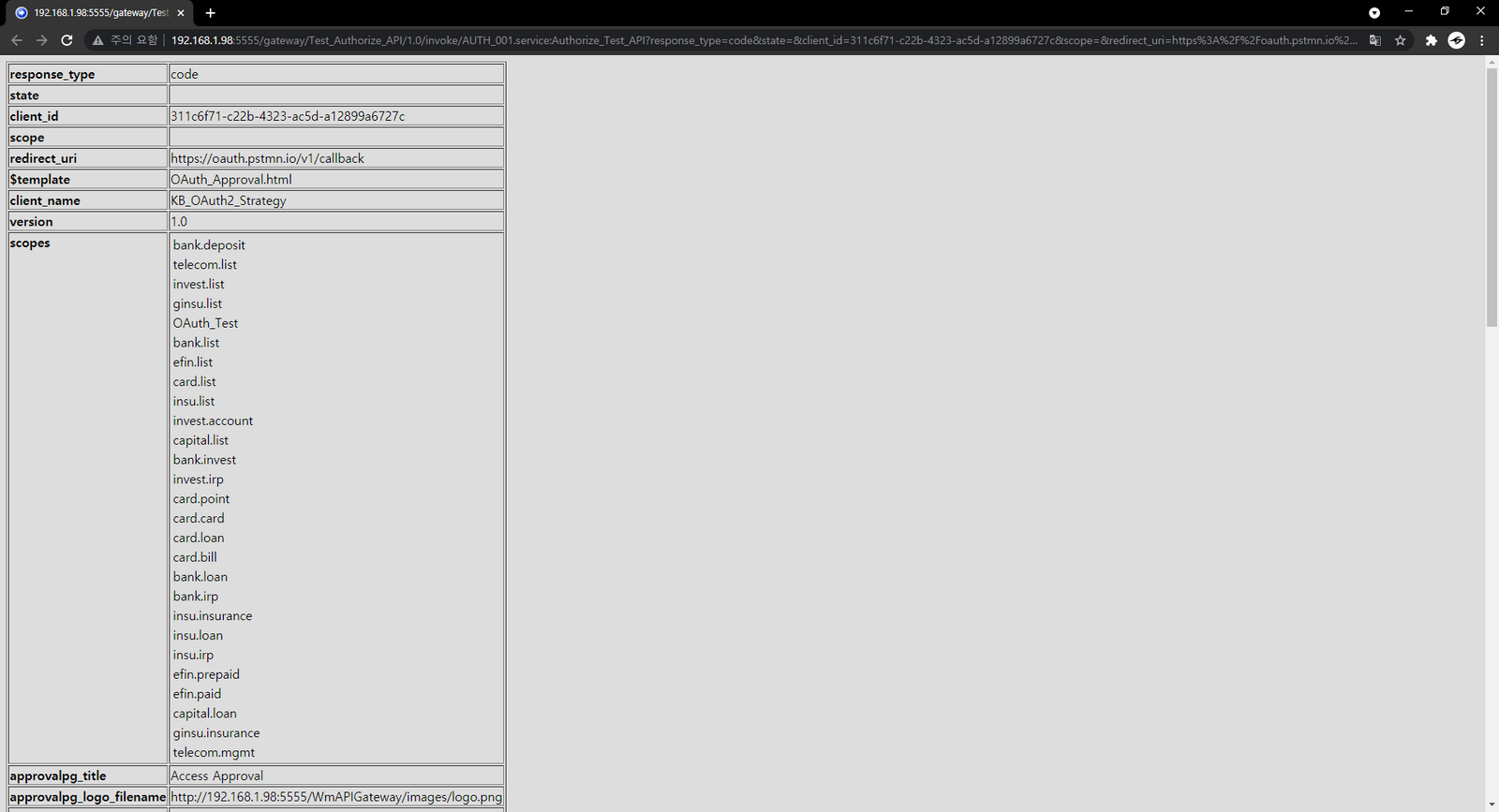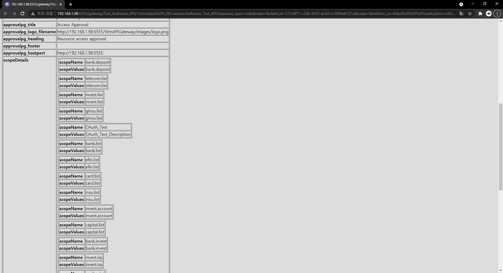 [webMethods API 10.7] Authorize API Settings Published July 19th, 2021 by Seo Ji Hoon API (GW Settings)Native API (IS Service) Postman > Authorization > OAuth2.0 Settings ResultAPI Request Test response.html is not OAuth_Approval.html ..