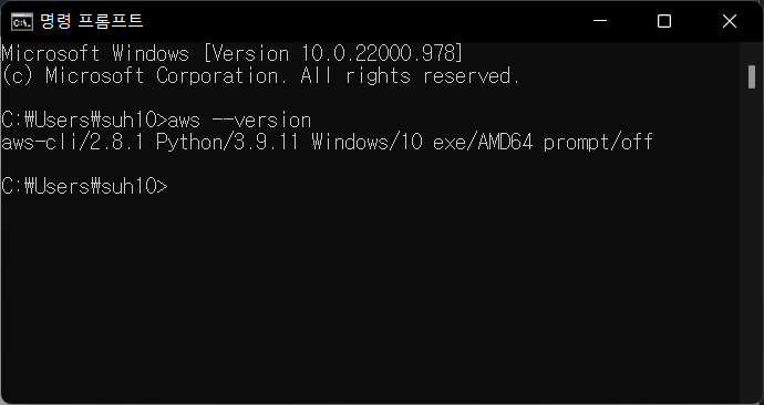 - PowerShell 또는 CMD 에서 aws --version