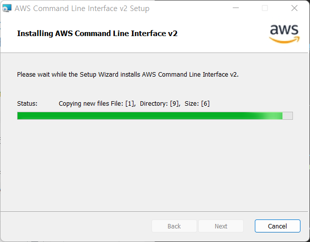 - 또는 PowerShell이나 CMD 에서 msiexec.exe /i https://awscli.amazonaws.com/AWSCLIV2.msi