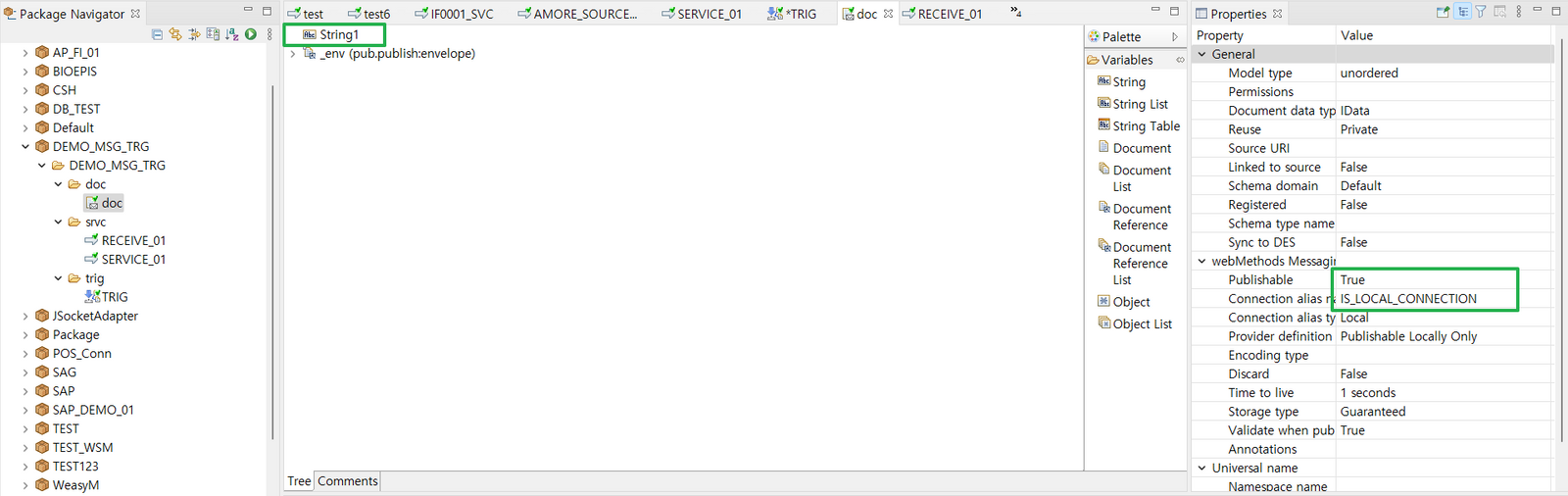 - documentTypeName : Publishable Document 의 Full Name ( 위 그림에서는 DEMO_MSG_TRG.doc:doc )