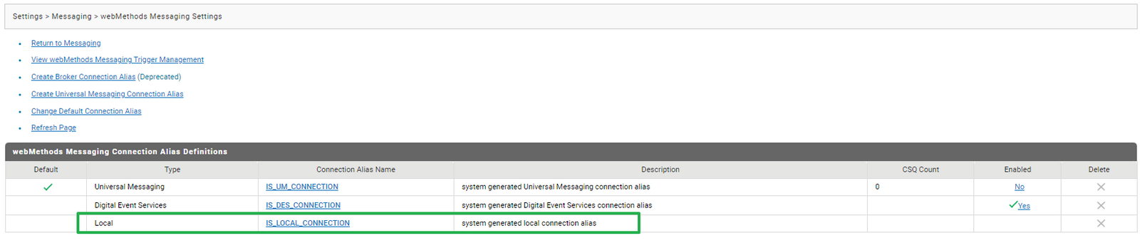 - Connection alias 를 IS_LOCAL_CONNECTION 으로 설정 =>IS Local Queue(기본 제공 작은 사이즈의 큐) 로 Publish