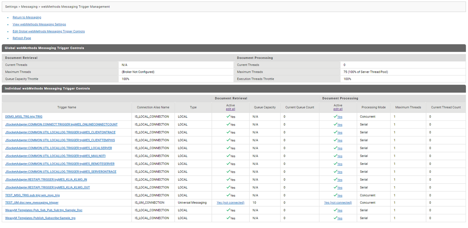- IS 에서 webMethods Message Trigger Management > 트리거 확인