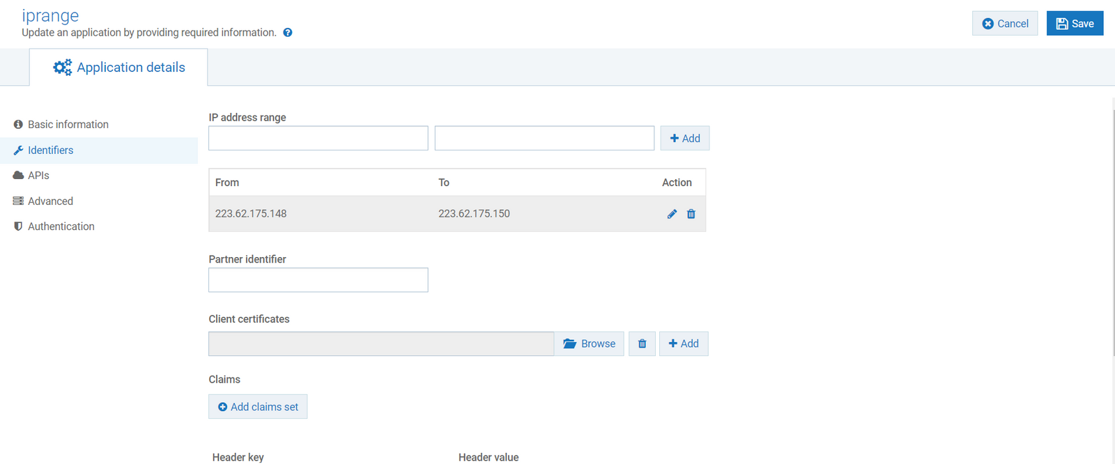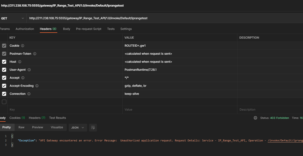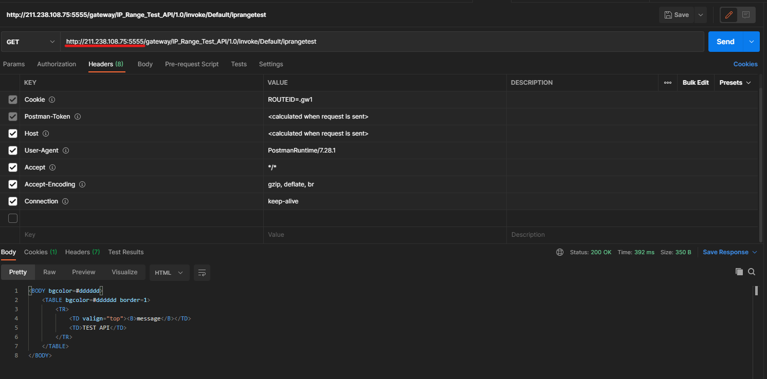 [webMethods API 10.7] IP Range Identifiers Test Published July 13th, 2021 by Seo Ji Hoon Application SettingTest API Policy 호출 정보211.238.108.75 ( Apache Web Server, 공인 IP 설정 후 외부 IP로 테스트 )정상 호출 Analytics 결과외부 IP로 사용한 223.63.175.149 정상적으로 Transactional Log 에 쌓이는 것 확인 삭제 후 테스트정상적으로 Access Denied