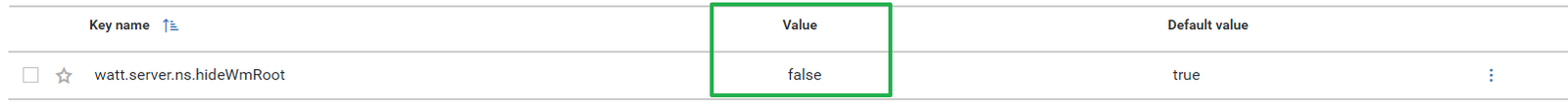 - 기본 서비스 확인을 위해 watt.server.ns.hideWmRoot = false 로 설정