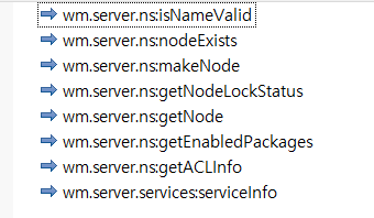 - wm.server.ns:nodeExists : 폴더가 존재하는지 확인하는 서비스 인 듯 하다 , 입력 값으로 service 를 받고 해당하는 folder 명을 적으면 status 로 response