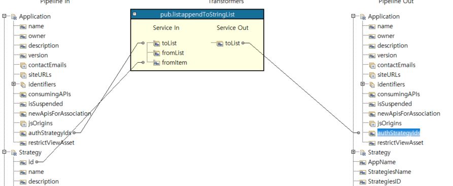 - INPUT 값 매핑 -> ID 값 을 Application/authStrategyIds (StringList) 에 Append -> Strategies 생성 -> Application 생성