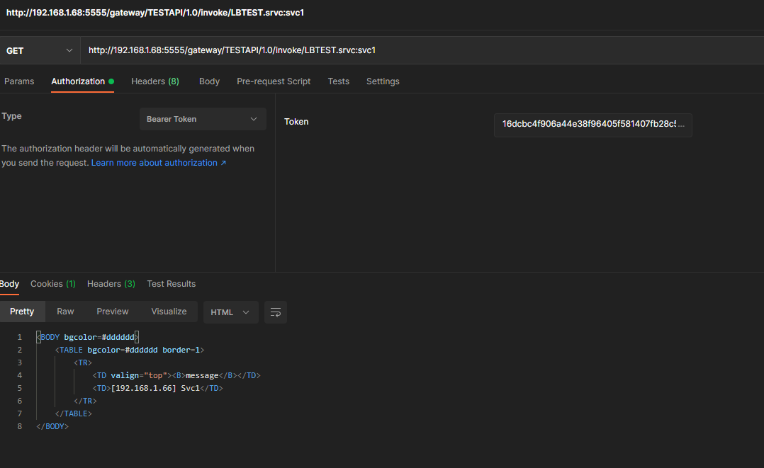 - 해당 Bearer 토큰으로 인증 테스트 ( TEST API 호출 )