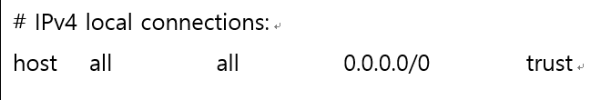 # IPv4 local connections -> 항목 아래와 같이 수정