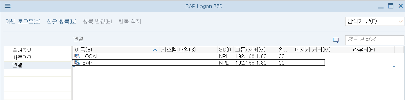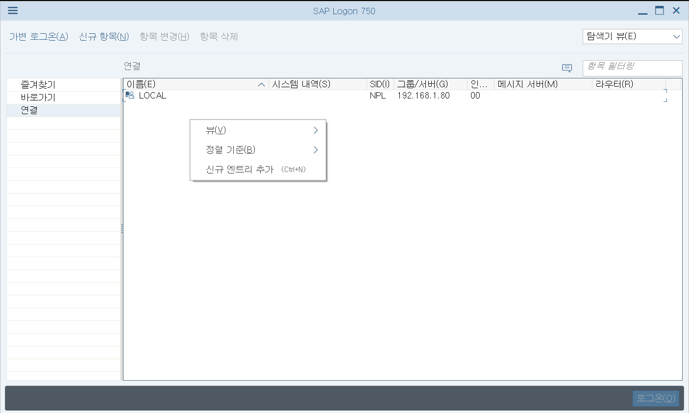 설치 후 SAP Logon 클릭