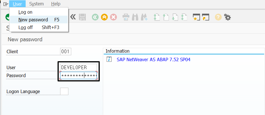 - SAP 설치 시 자동으로 생성 된 DEVELOPER 계정을 사용하여 Function Module을 생성 한다.