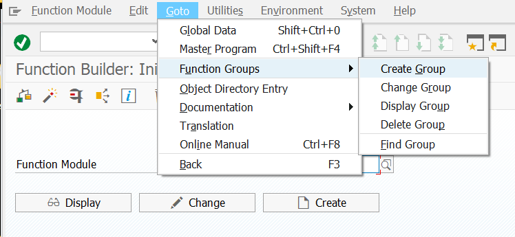 Goto - Function Groups - Create Group 으로 Function Module 의 그룹 생성