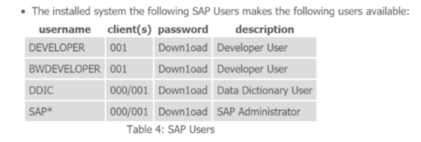 SAP Trial 을 생성하면 자동으로 생성되는 SAP Users 는 다음과 같으며