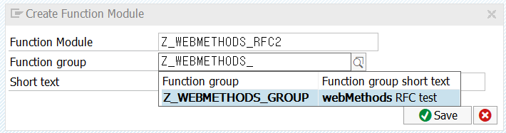 Group 생성 후 Create 를 눌러 Function Module을 생성한다.