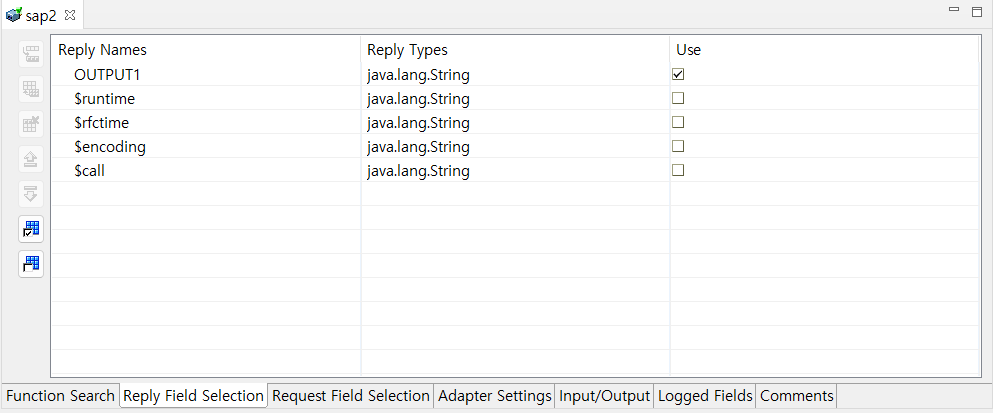 Import 탭에서 SAP 시스템으로 Inbound 되는 Field 설정 (webMethods 의 Request Field)