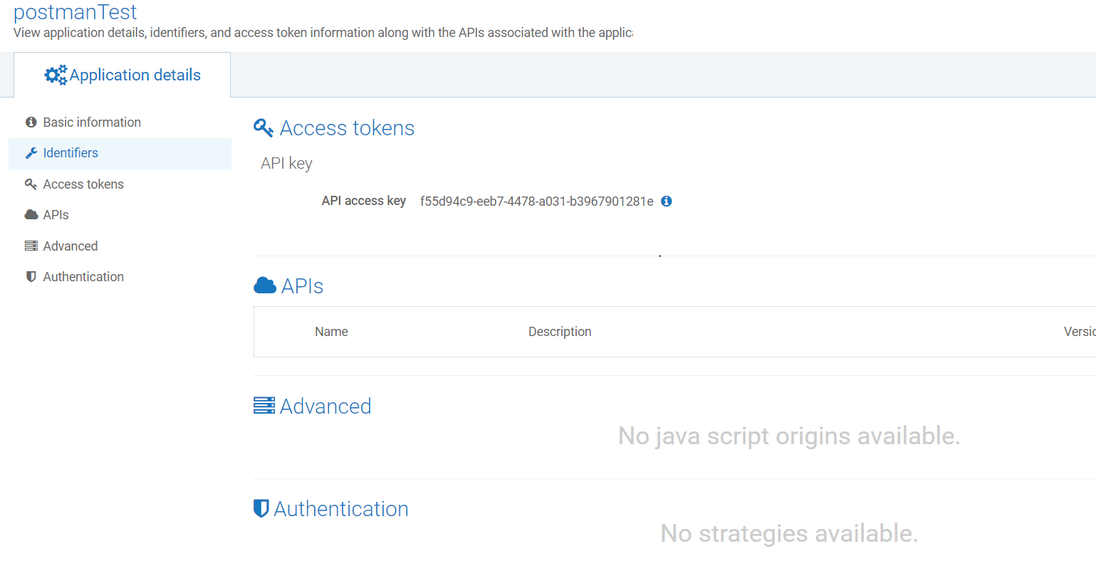 => Error : Identifier 'key' attribute not present, should be one of [httpBasicAuth, accessProfile, apiKey, wssecX509Token, wssecUsernameToken, ipAddressRange, hostNameAddress, openIdClaims, jwtClaims, oAuth2Token, payloadElement, httpsCertificate, XPathExpression, kerberosToken, token, partnerId, httpHeaders]