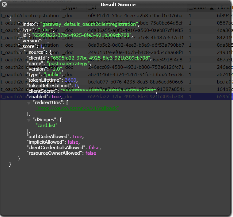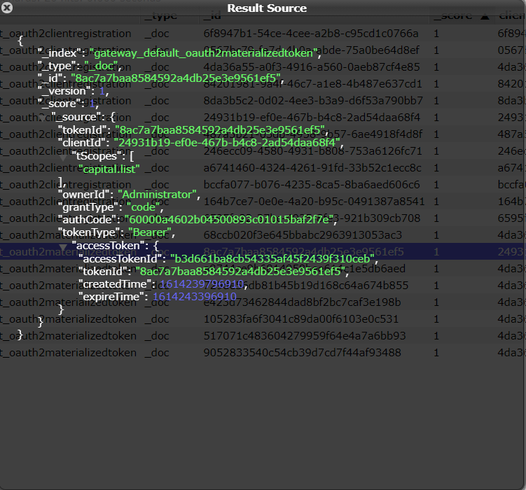 getAccessToken을 이용하여 생성된 accessToken은 gateway_default_oauth2materializedtoken 인덱스에 저장