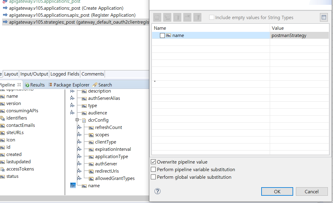 _post (createApplication)서비스 Service In - Service Out - Pipeline Out