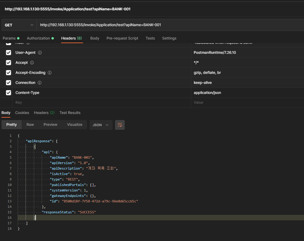 APIs를 매핑 하기 위해 apigateway.apis:getAPI Application:test 로 개별 호출 가능하지만