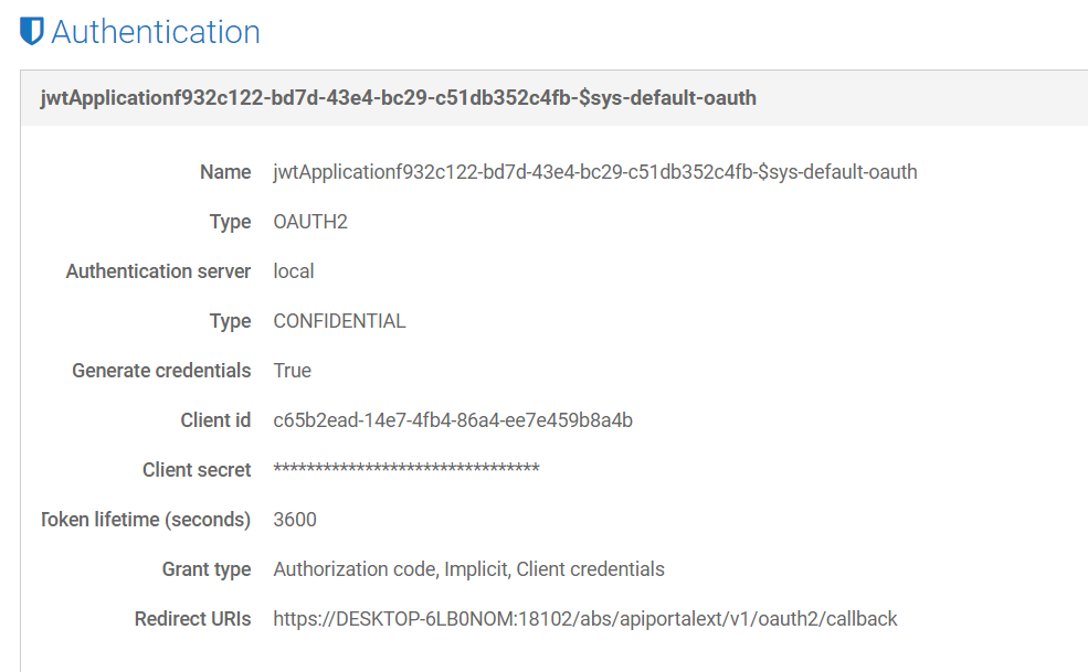 portal로 요청해서 생성한 application 정보
