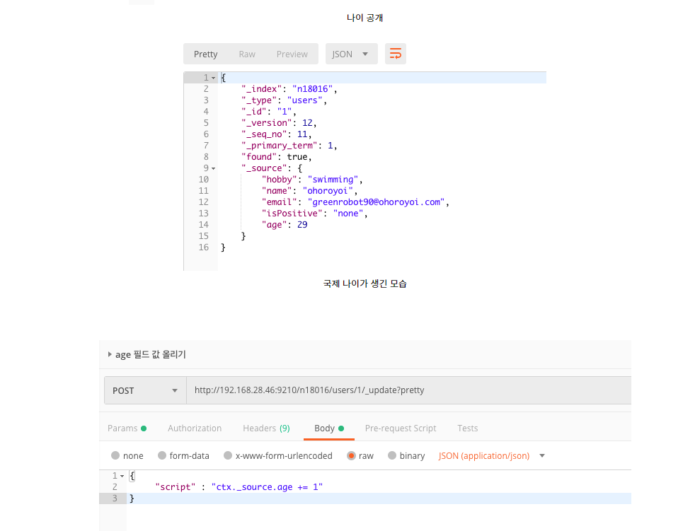 _post 서비스를 통해 해당 인덱스에 document 하나를 생성할 수 있다.