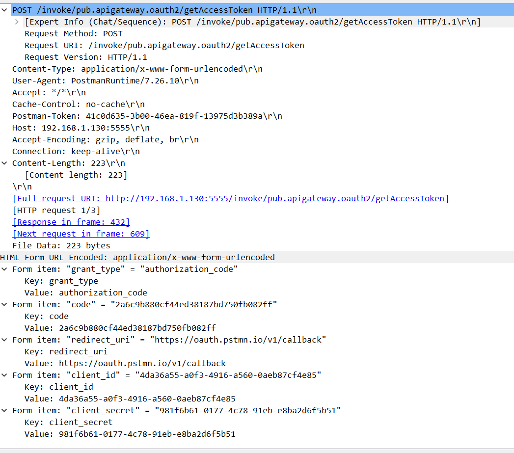 OAuth 전체 flow Wireshark 분석 (Postman <--> Gateway)