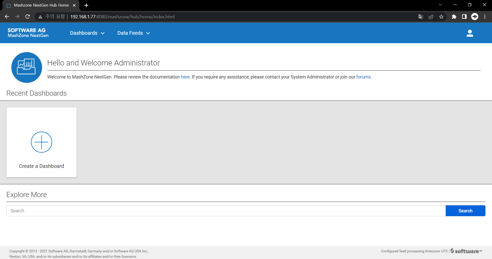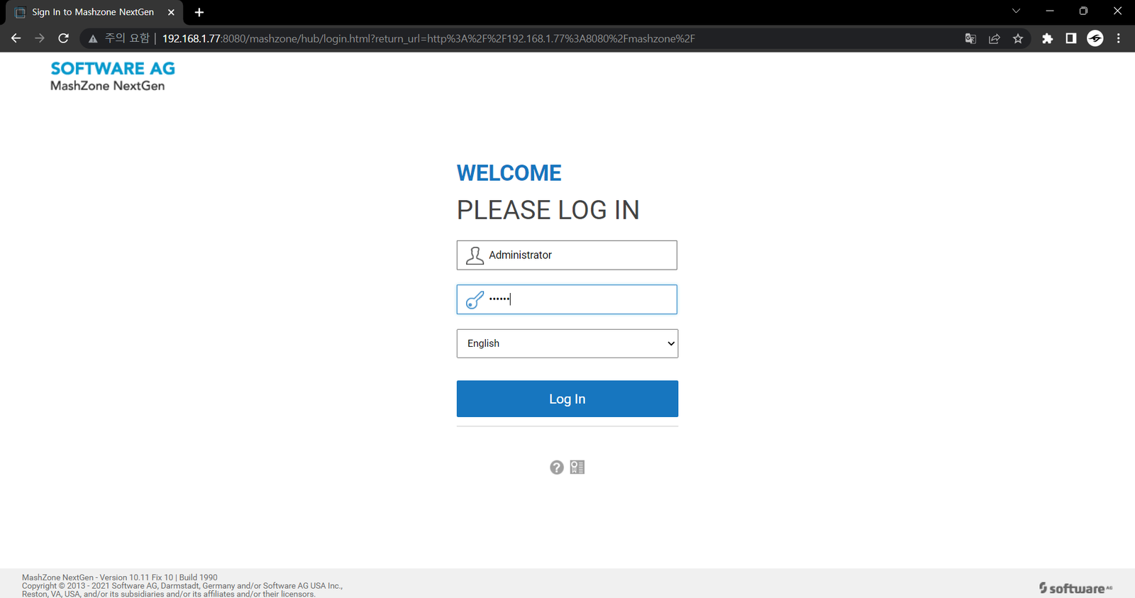 - 설치 시 지정한 기본포트 8080으로 접속 가능 ( {Hostname or IP} : 8080 으로 접속)