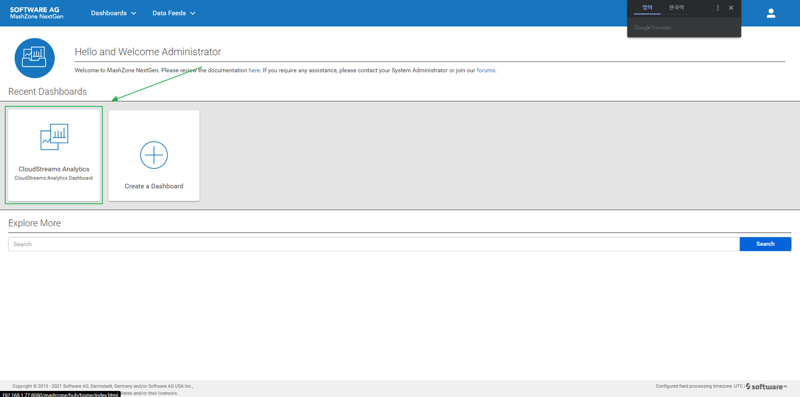 - CloudStreams Analytics 대시보드 import & 대시보드 생성 확인