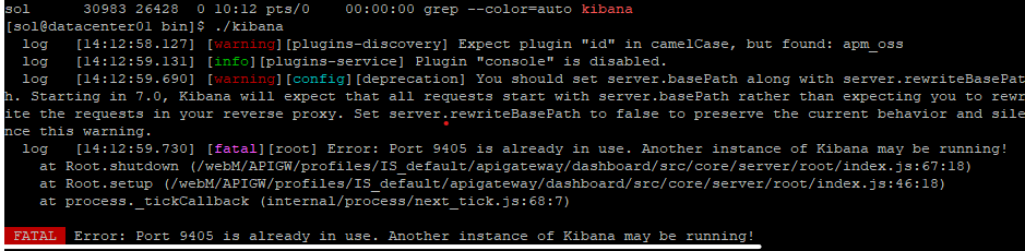 - 수동으로 실행시 이미 포트 사용 중 / 키바나가 동작중이라고 나옴 / vi kibana.pid 명령어로 pid 확인후