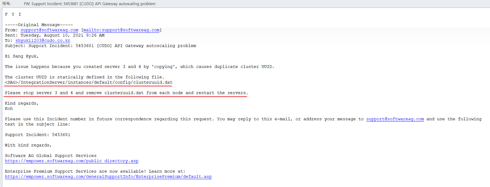 /IntegrationServer/instances/default/config/clusteruuid.dat - vm Copy -> clusteruuid.dat 파일까지 copy 되어 문제가 생김