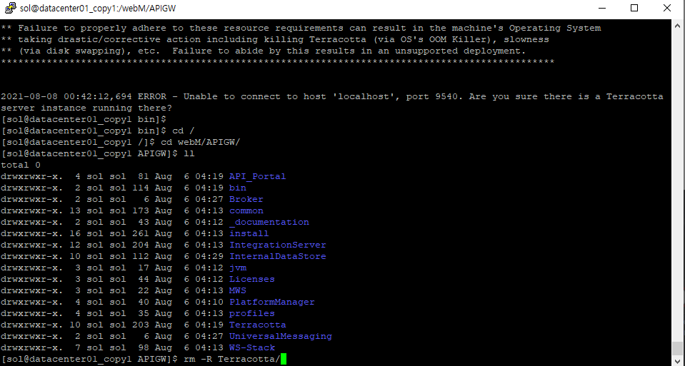 - 96 , 134 서버도 동일한 Terracotta Server Array URLs 설정, /webM/APIGW/common/conf/ 경로에 동일한 테라코타 라이센스 필요