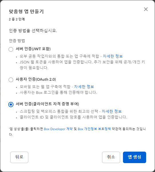 STEP 1. Box Develper Consloe 에서 App 생성