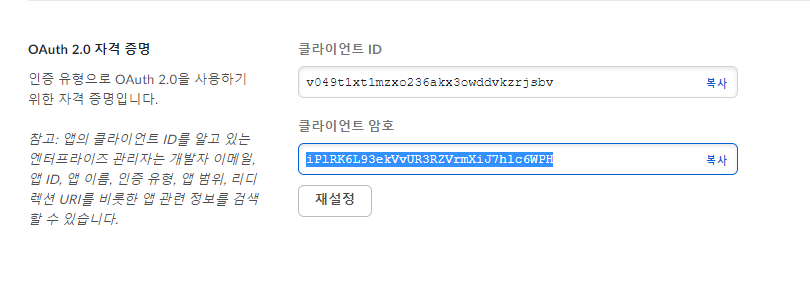 생성 된 Client ID 및 Client Secret 예시