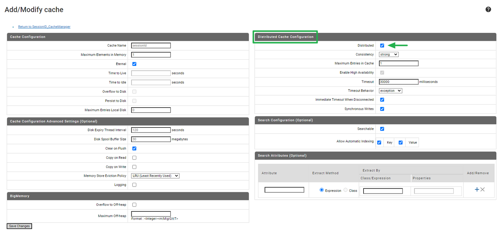 - Distributed Cache Configuration (분산 캐시 구성) > Distributed 선택