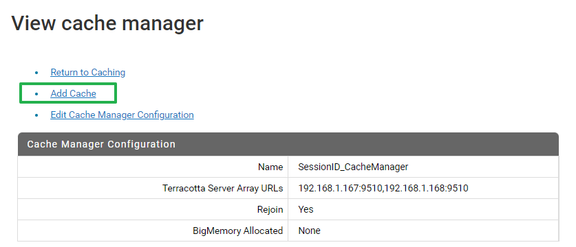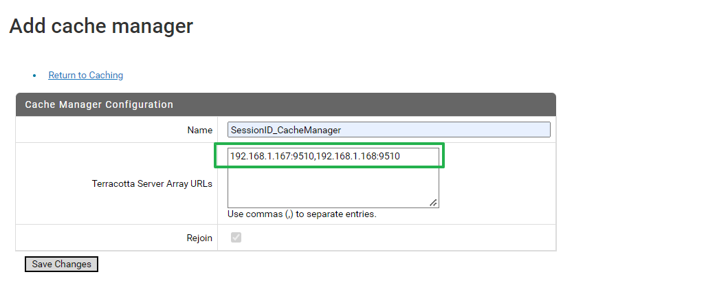 - Terracotta Server Araays URLs 에는 tc-config.xml에 설정한 대로 입력