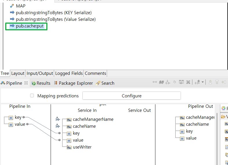 - 기 생성 된 캐시에 데이터(Key-Value) 저장 (pub.cache:put)
